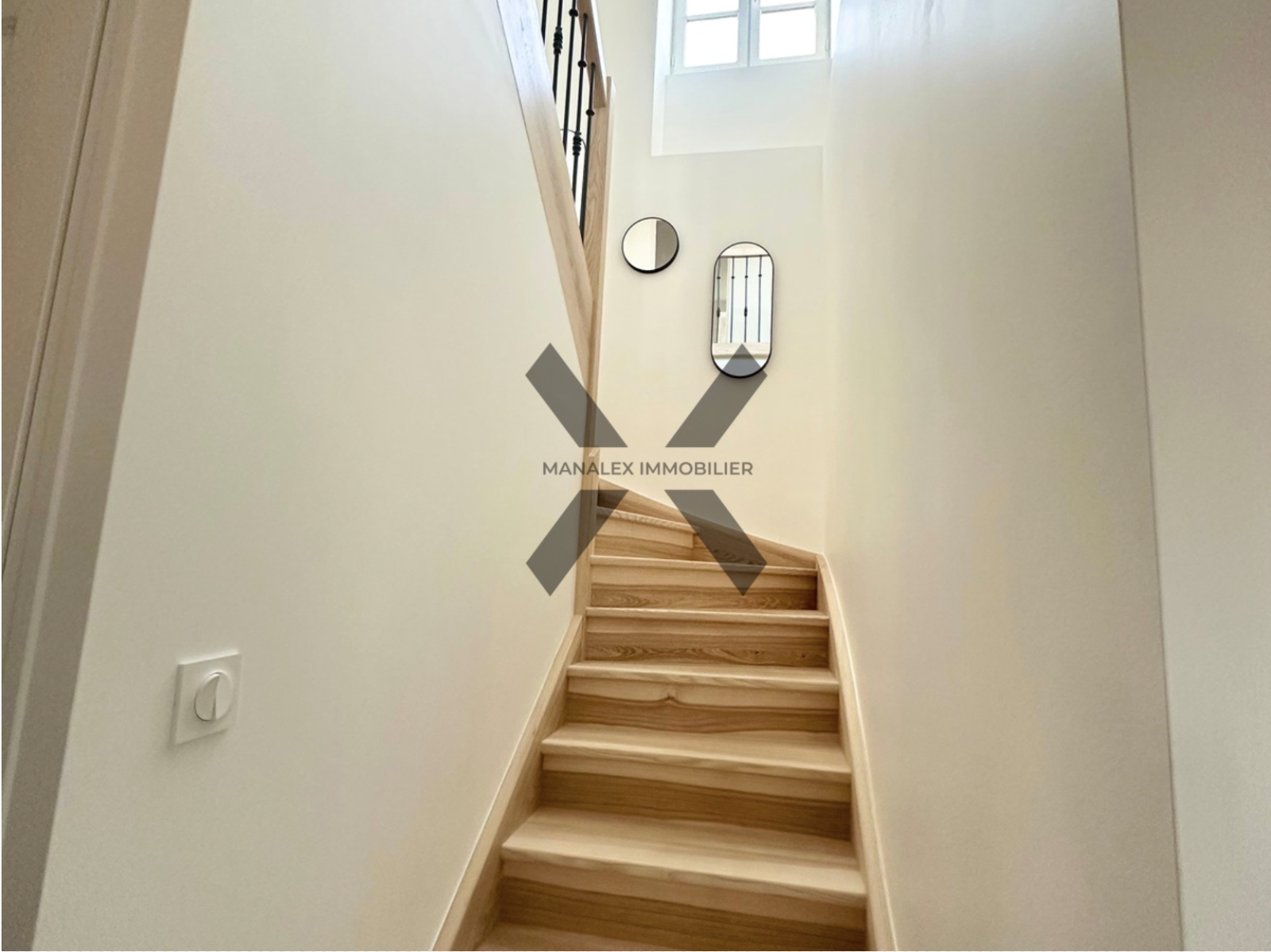 Les éléments d’origine, tels que les parquets restaurés et l’escalier en bois clair, apportent une signature élégante et authentique.